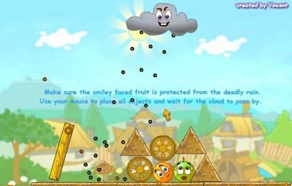 保护橙子游戏方式与原作保持一致:拖放不同的物体构建遮蔽来保护您的橘子。但这次,还要小心邪恶的酸雨云从背后来袭。