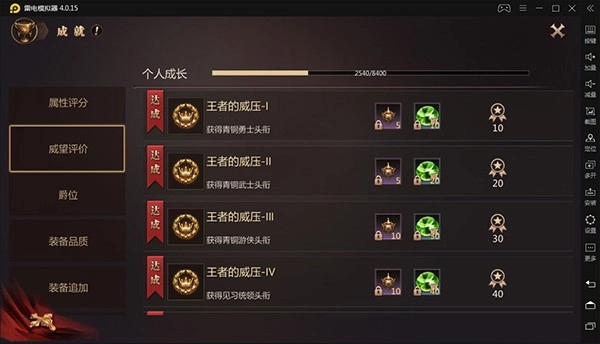 个人成长主要是针对玩家本身的成长,比如等级、战力、属性评分、装备、法宝之类。等级、战力的提升,都可以完成对应的成就,获得奖励。