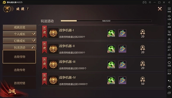 成就系统主要是针对不同的玩法,大家在不同的玩法中,达到对应的要求,即可完成成就任务,领取对应的奖励!