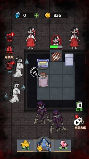 恐怖鬼怪 躲猫猫 ,结合躲猫猫游戏规则的小型塔防游戏,融入当下流行的恐怖鬼怪塔防元素,游戏开始时选择你的房间,在空地建造防御塔,合理安排位置,躺在床上提升金币收入,布置防线,用炮火攻击鬼怪吧。