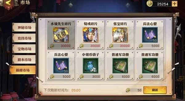 巅峰货币可在市场里兑换军师碎片及资源。