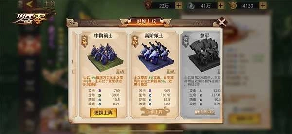 与其他游戏不同的是,在《少年三国志:零》中,不仅三国名将会亲自出征,士兵也会作为重要单位协战,为主将提供属性加成。因此,除了军师、主将,士兵也是游戏的重点培养对象之一。以步兵为例,从初阶步兵到6阶步兵,再到虎贲军、禁甲军等。从低级士兵到高级士兵,不但是属性维度的提升,也会有一些特别契合某些主将的士兵逐步解锁。如 “西凉骑兵”,就对主将马云禄有特殊加成效果。不必一味看重级别的高低,选择合适的士兵,有时就会给主将带来意想不到的提升。