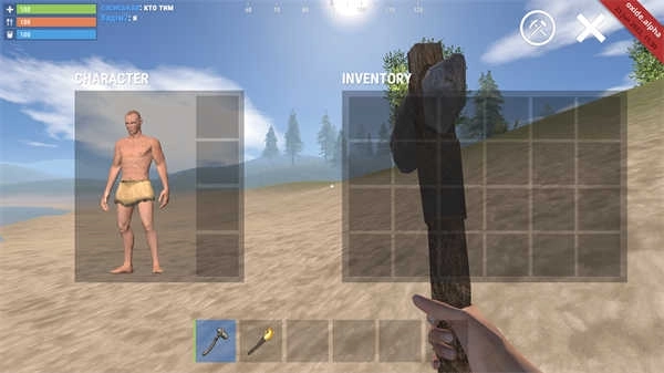 3、玩家需要在游戏中进行树木的收集可以制造火堆进行生存的挑战,保持自己的身体的温度,