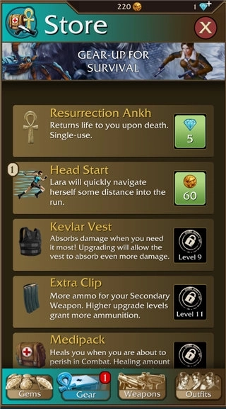 6、您可以选择经典的Lara服装,每个服装都有自己的游戏特色。