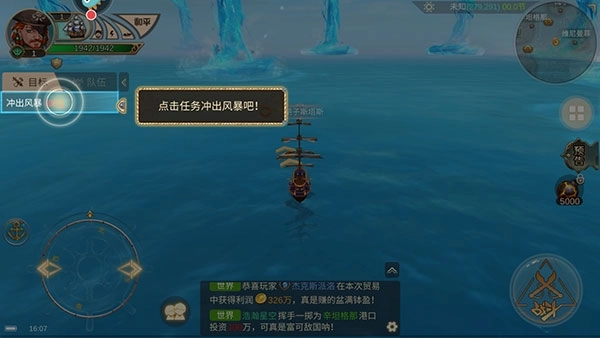 6、点击左上角的任务,操控船只完成新手的第一个任务。