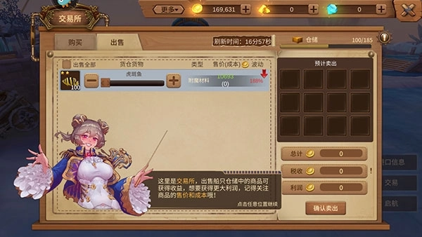 9、在交易所我们可以出售,储存的商品,注意关注商品的售价与成本价。