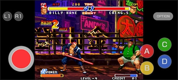 1、首先下载并安装好恶狼传说2,点击左上角的L1进行投币,然后点击右边的A键开始游戏。
