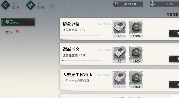 每日任务是萌新必做的,完成每日任务除了可以获得贡献点数和训练材料外,还能通过活跃度获得感知和源晶碎。每日任务会在每日凌晨4时刷新,一定要记得完成。