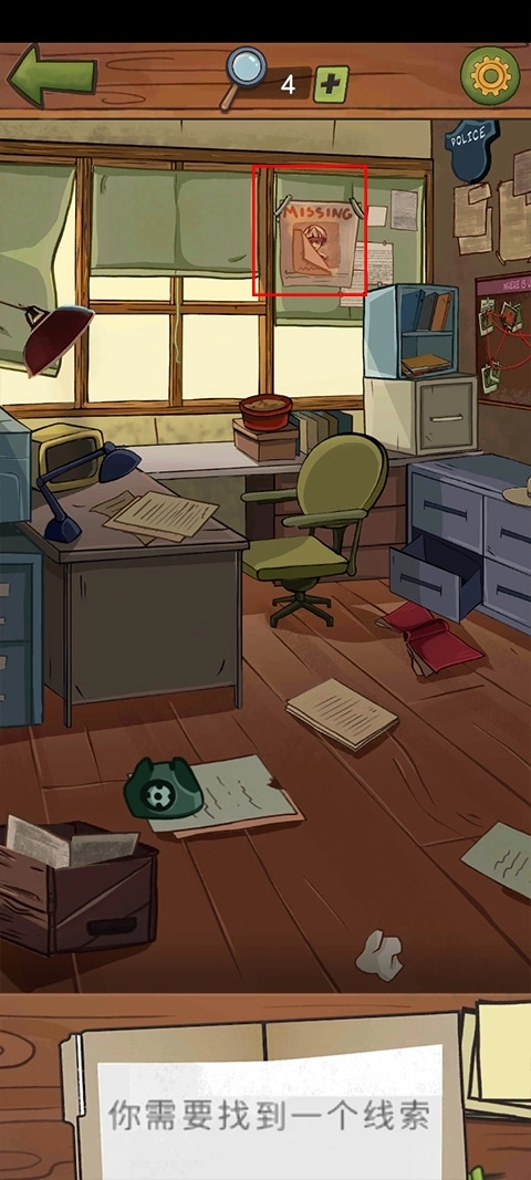 5、在此处同样是进行线索收集。要是碰到难题,点击放大镜,就能获取一个提示。要留意的是,屏幕上方正中央显示着放大镜的可使用次数,千万别浪费机会呀。