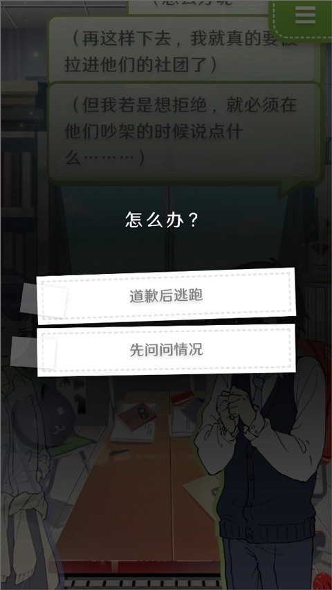 3、当三桥犹豫是否加入社团时,玩家可依据游戏剧情选择当前最合适的回应。