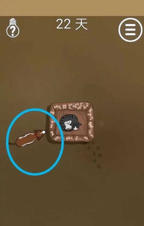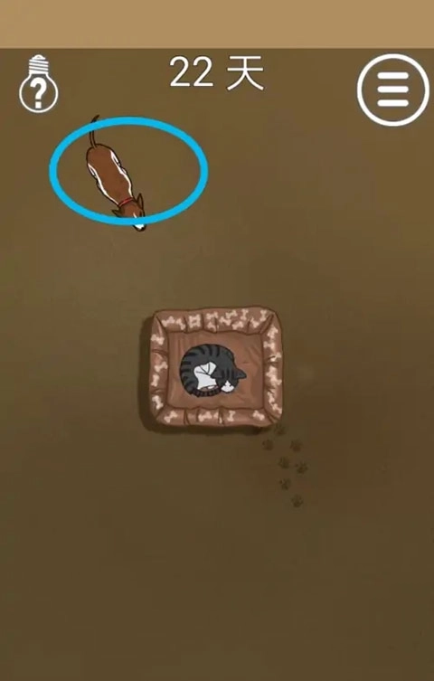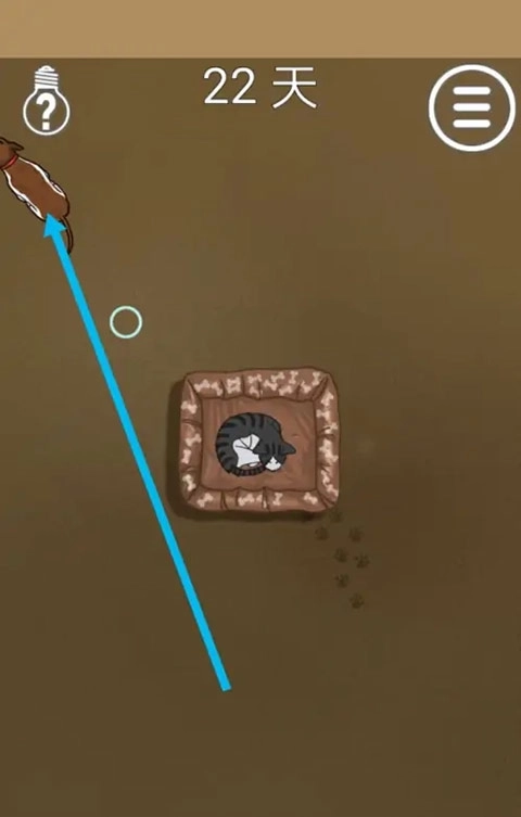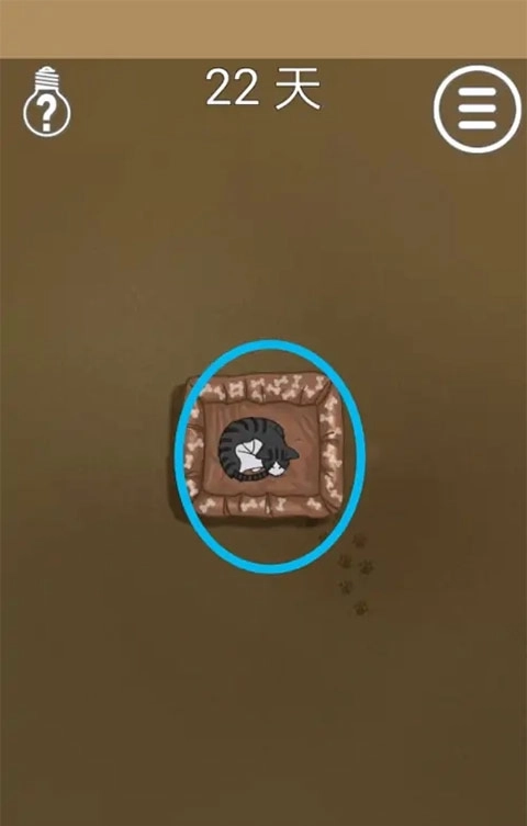 1、在本站下载安装该游戏的最新版本,打开进入第22关,可以看到猫咪在睡觉。