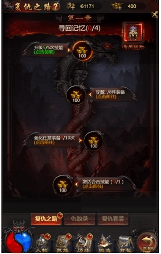 玩家通过复仇之路,完成指定任务可获取高级装备和大量的奖励