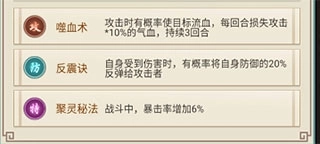 在多数门派中,弟子通常只能掌握一些基础的攻击技巧,但某些特殊门派则传授独特的战斗秘术。例如【噬血术】,施展时有一定几率使对手流血,每回合流失相当于攻击力10%的气血,效果持续3回合;又如【聚灵秘法】,在战斗中可提升6%的暴击率。