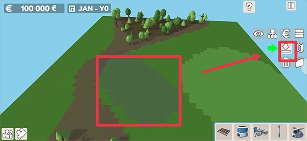 2、每一种矿石与液体都被石头覆盖着。若你想开启采矿,就需要移除石头。要是想移除石头或树木,点击垃圾桶按钮,接着在删除选择器里,点击对应的物体便可将其删除。