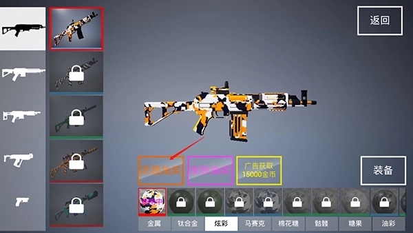 4、可以通过武器抽奖、皮肤抽奖和广告获取得到更多的武器;