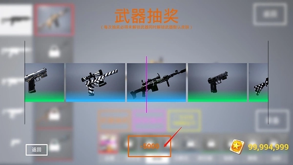 3、点击武器抽奖后,花费5000金币来获得一次抽奖体验;