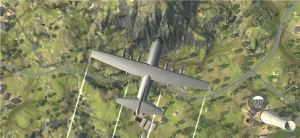 5、进入游戏如图,玩家将乘坐飞机进行大逃杀,点击右下角降落伞按钮;