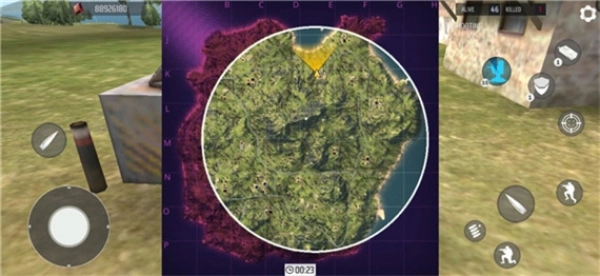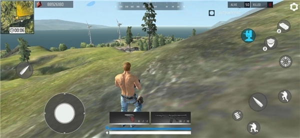 7、操作虚拟按键控制角色移动,并在地图上拾取枪械武器以击败其他玩家。