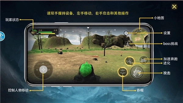 1、作为生活在洪荒世界上第一血蛋,你要做的是追逐吞噬其他生物以完成您的进化目标;