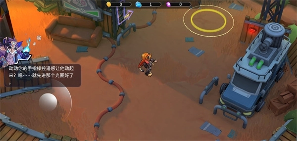 3、我们可以通过左下角的轮盘控制角色移动,在NPC的引导下完成新手指引任务,