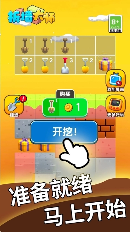 1. 挖掘更多建筑物,收集更多砖块,用砖块兑换更多道具。
