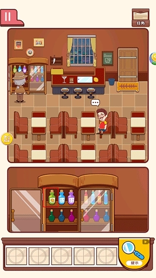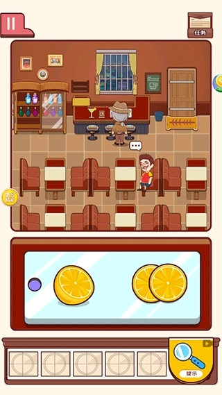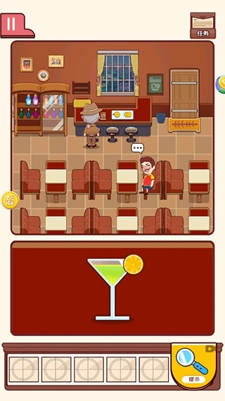 5、最后,点击吧台的酒杯,把柠檬汁与柠檬放置在一起,便能调制好一杯酒,把酒递给线人喝下,即可通关。