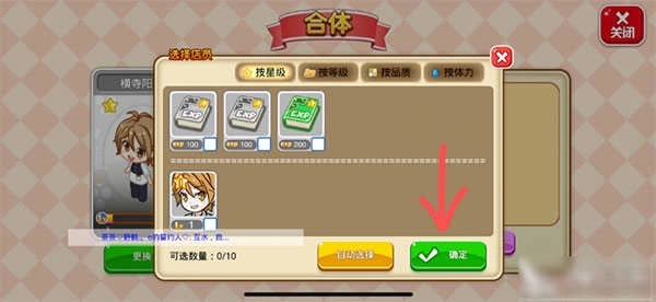 5、挑选好卡片与经验书后,点击右下角的“确定”按钮完成合并操作。