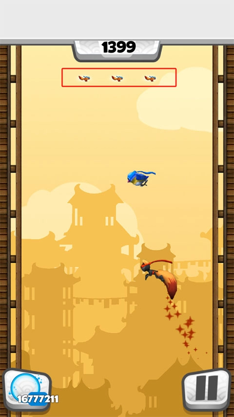 6、当获取到三个飞镖后,飞镖会变身为巨大的飞镖,能够打败沿途的所有敌人。
