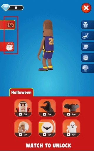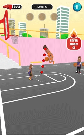 2、拖动角色起飞,瞄准篮筐,将篮球扔进篮筐,获得相应分数。