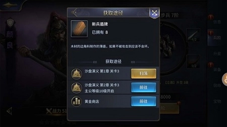 需要获取足够的“军械”,激活兵阶,升级兵阶。