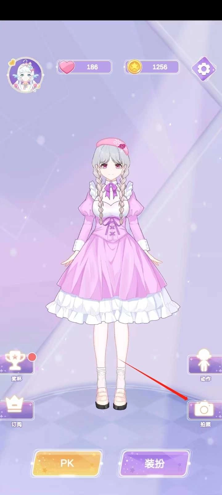 5、你还能够在主页点击相机以及动作来调整站姿并为其选择背景拍照哦~