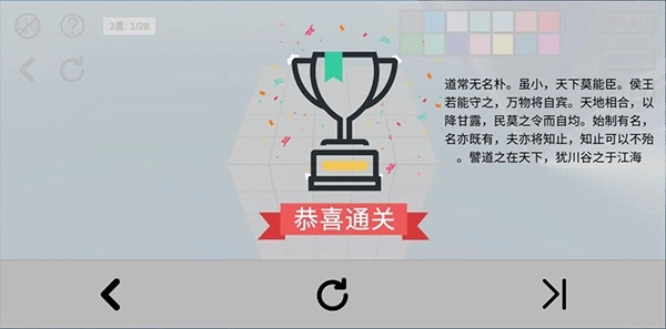 其次,游戏细节上可以看出开发者非常用心了,整个游戏过程可以对棋盘旋转,缩放,最赞的是可以根据自己的喜好来给方块穿上“美美的衣服”,即可以自主选择方块颜色,最后游戏关卡过关后,自己复原的立方体旋转起来简直不要太酷炫,成就感满满呀。通关游戏不仅可以让玩家娱乐,还可以在游戏中进行学习数学知识。还等什么?快来游戏中体验感受—下吧!看你能闯到第几关!