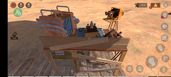 1、在广阔的沙漠中根据任务的提升寻找需要收集的材料进行游戏