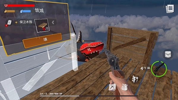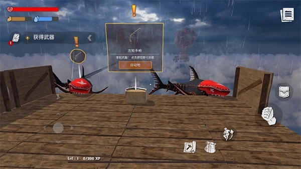 5、接着,我们得从木筏上下来,去收集一些所需材料。不过,务必留意时间,要是停留时间过长,就会招致怪物的追击。
