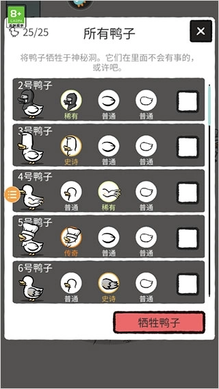 6、此外,点击左上角的标签,便能查看鸭子图鉴,借助这一方式可更有效地开展孵化收集工作。