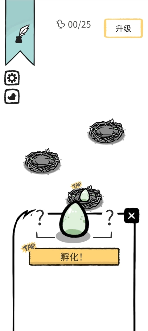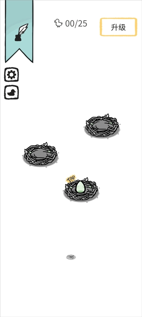 玩家仅需于场景中稍作等待,鸭子便会在窝内孵出鸭蛋,点击鸭蛋,就能孵化出更多不同变异种类的奇异鸭子。