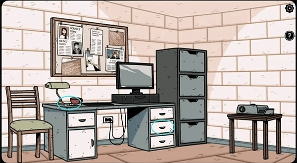 1、出发前先打开办公桌右边的抽屉拿到地图,再拿走桌上的糖包并点击道具栏里的地图来到前作的杀人屋。