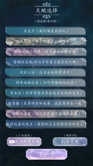 3、挑选属于自己的天赋,这在养成的过程中会提供极大的助力。