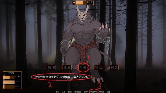 第二步: 在攻击过程中,一旦出现暴击或躲闪的情况,就点击快速存档,接着继续进行攻击操作,直到角色的血量降低到30点以下。