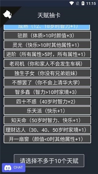 3、在开局之前,可以无限抽天赋,你可以自由选择