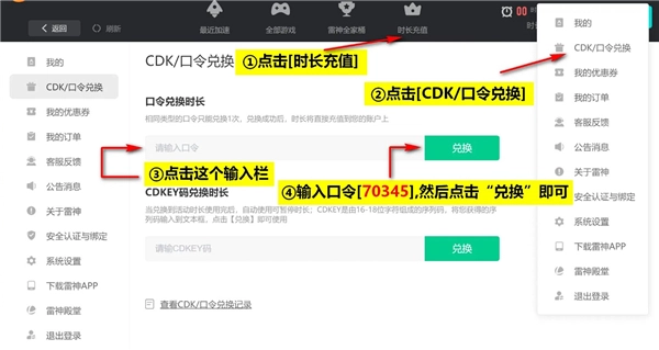 3、在充值页面的右下角,点击【CDKEY兑换】。