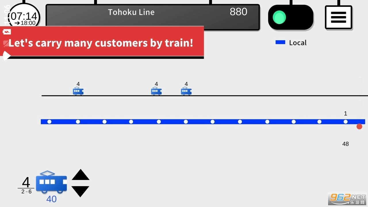 请迅速为在车站等待的顾客提供火车服务,并快速将其运送至屏幕的右边缘。