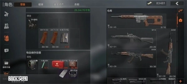 3、在暗区突围中,药品和身体构造分别有哪些?