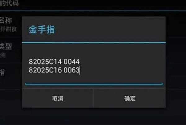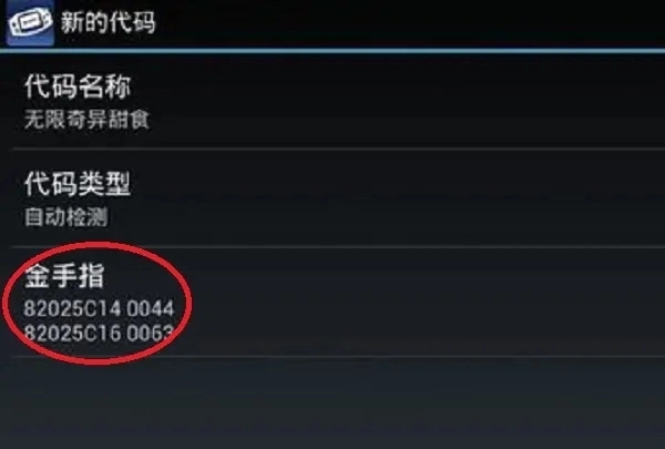 (5)比如“无限奇异甜食”金手指是:82025C140044、82025C160063,再点击“金手指”输入