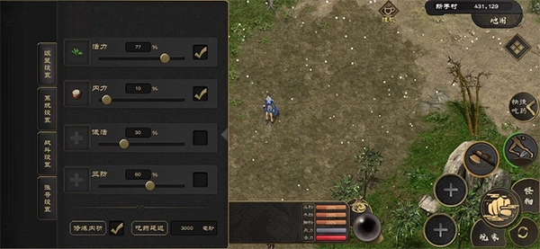 3、恢复设置:合理运用该功能,能够有效节省药品,还能快速补充活力与内力。比如,将活力放入生药设置为70%,简单来讲,就是当活力低于70%时,会自动使用生药。若把吃药延迟设置为1000毫秒,即每过1秒就检测一次活力是否低于70%,若低于70%便自动使用。这些内容相对容易理解。接下来,我们讲讲修炼三攻,勾选后有什么作用呢?勾选后可以增加内功上限,当内功消耗到不足10%,再次补满时,内功最大值会得到提升。(活力 + 内功 = 呐喊等级)