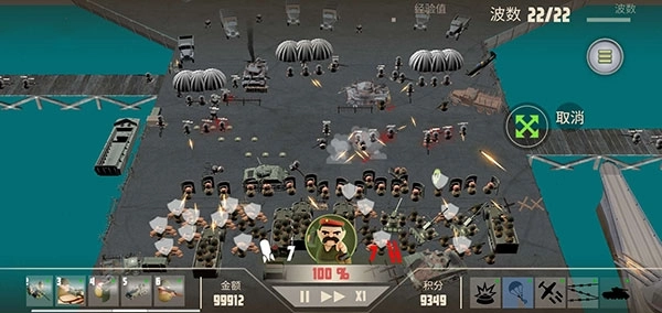 当前游戏包含数十种级别,拥有4种被动技能与5种主动技能。在每一轮游戏中,玩家能够挑选不同的部队类型。随着游戏进程的逐步推进,还会陆续开放各类不同的升级道具。玩家还能依据战争形势来进行排兵布阵。
