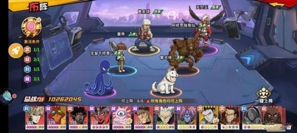 童帝1核加绝技伤害以及暴走的增益,附加戈留干修普被动与警犬侠的绝技是亮点,主练角色优先级为警犬侠、戈留干修普、黄金球。