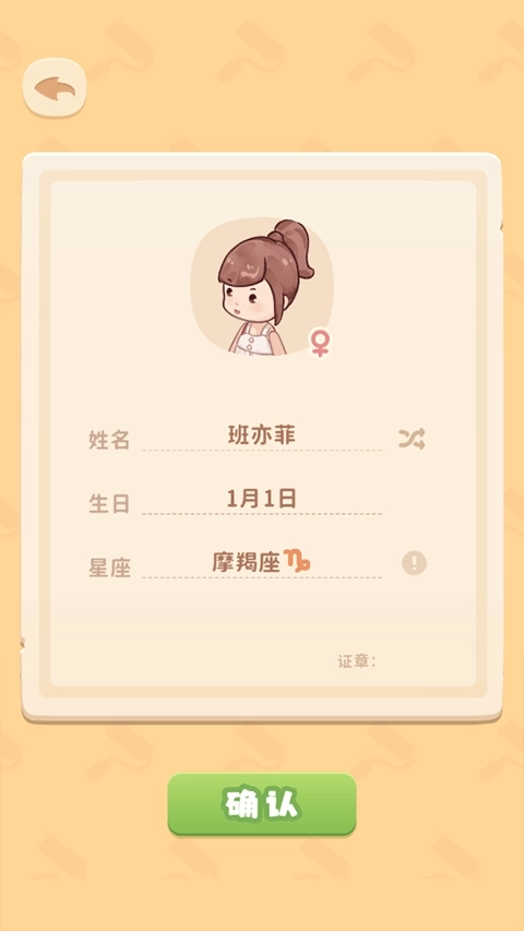 2、再为她取一个名字、生日,点击确认即可进入游戏。