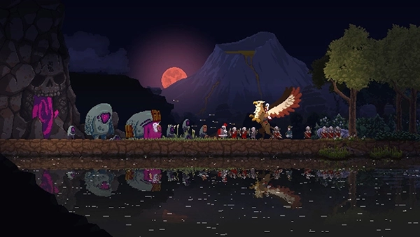 其次,所有岛屿共用时间轴,回到曾经的岛屿时,围墙会有一定程度的破败,这是基于钻石系统做出的新设定。在这一作中,所有祭坛的 BUFF 是所有岛屿共用的,而钻石要到第二个岛才开始能够获取。因此,玩家肯定需要反复回到上一个岛屿去解锁祭坛或者隐士。要是回到上一个岛时建筑完好无损,玩家可能就会迅速解锁然后离开,这样游戏就没什么难度了,而且还可能会让玩家对这种机械操作产生反感。就我个人而言,我觉得这个设定还不错。并且,并非所有单位都会解甲归田,只有一部分单位会变回平民(需要注意的是,是平民而非乞丐,回去之前装满钱袋,就很容易重新组织起战斗力)。