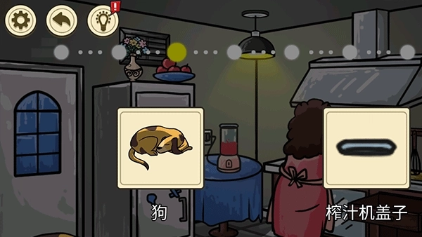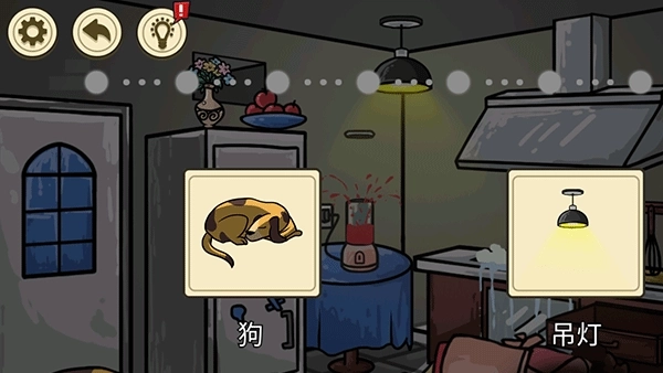 2. 随后打开水龙头,将垃圾桶碰倒在地,点击陶瓷刀,紧接着点击开关打开通风口开关,最终点击吊灯即可通关。